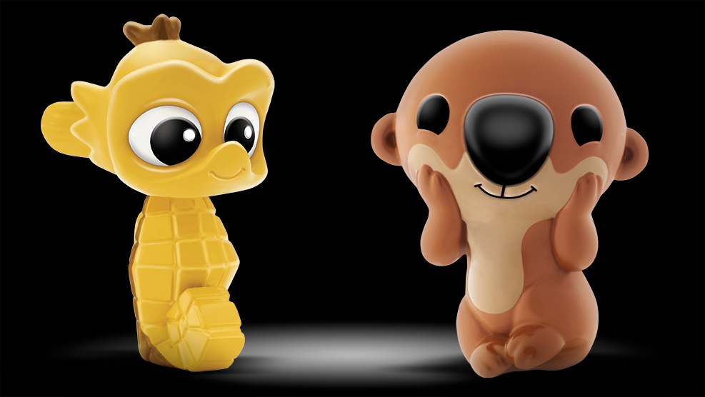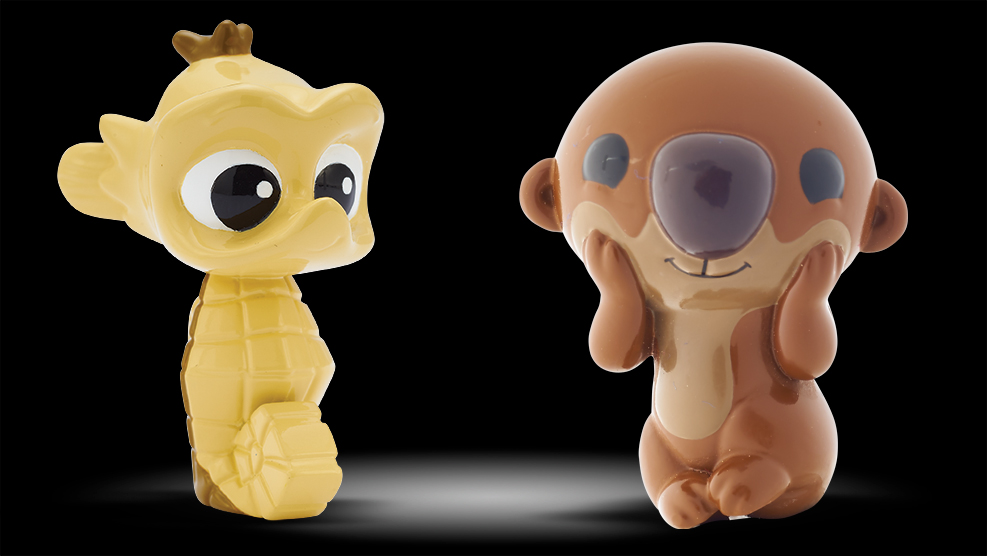 A series of small toys were painted with a high gloss paint, resulting in unwanted reflections and washed-out color.